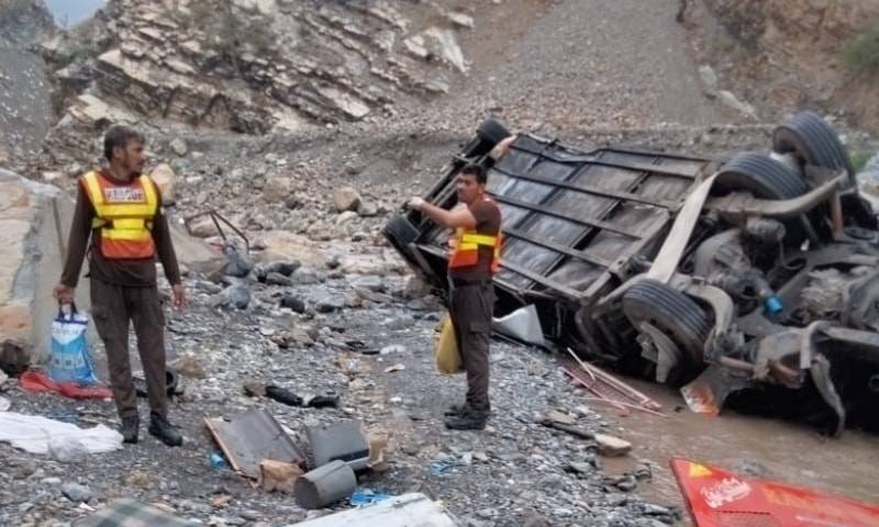 In a tragic incident early Friday morning, at least 20 people were killed and 21 others injured when a passenger bus skidded off a narrow mountainous road and tumbled into a ravine in the Yashokhal area on the Karakoram Highway in Diamer district, Gilgit Baltistan. The accident occurred around 5:30 am, according to local police reports.