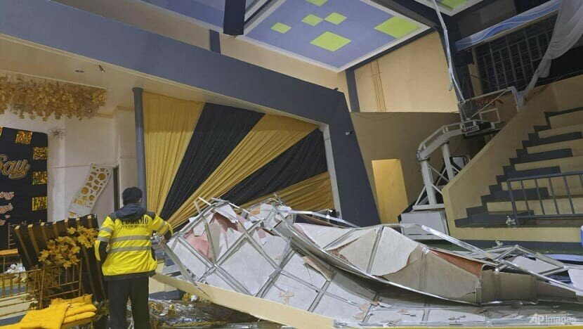 A piece of the ceiling collapsed within a city sports and entertainment centre.