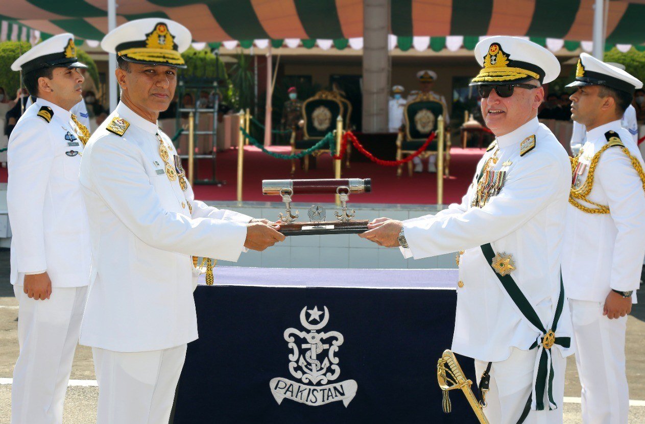 A ceremony to mark Admiral Amjad Khan Niazi’s elevation as Chief of Naval Staff of Pakistan Navy was held today. The change of command ceremony was held at PNS Zafar, Islamabad where Adm Zafar Mahmood Abbasi symbolically handed over command of the Pakistan Navy to the new Naval Chief.