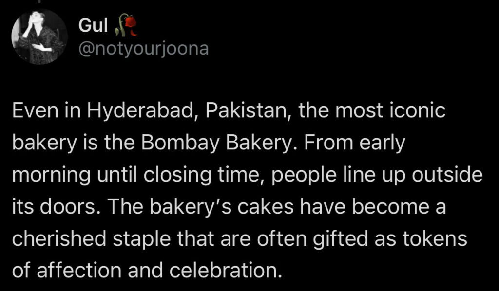 “Even in Hyderabad, Pakistan, the most iconic bakery is the Bombay Bakery,” one user wrote, praising its enduring popularity.