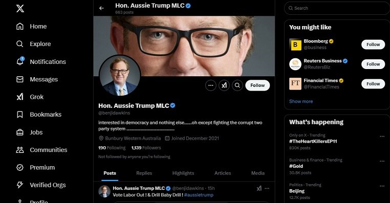 “I’ve launched a political protest against the tyranny and systematic corruption of the Labor government in WA,” he wrote on X late Wednesday, signing off as “Aussie.”