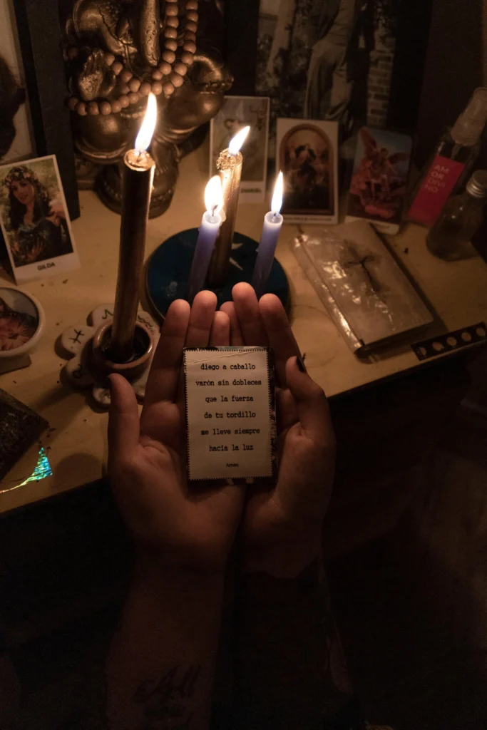 On Friday night, Martínez was in her candlelit home in Buenos Aires wearing a robe covered in tigers and lighting candles at an altar that included burned sandalwood; Ganesha, the elephant-headed Hindu god; and a photo of Diego Maradona, the late