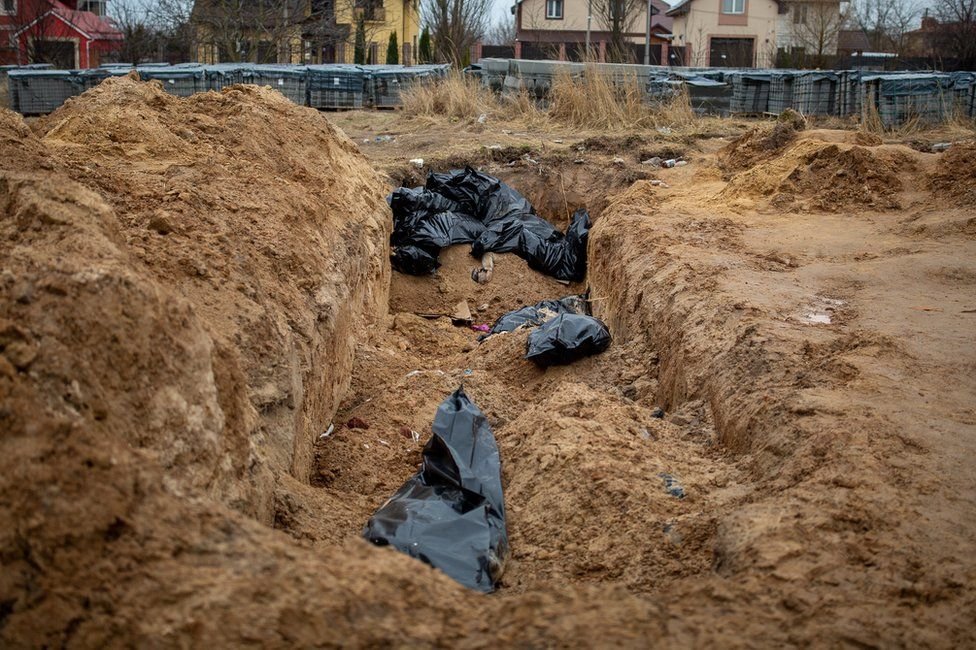Russia is being investigated for suspected war crimes in Ukraine after photographs from Bucha showed the remains of citizens lying on the ground and makeshift graves.
