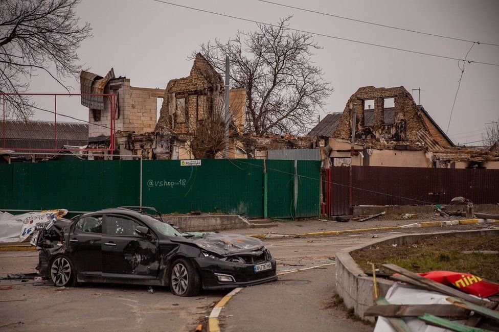 The village just outside of Kyiv has been the setting for suspected war crimes, causing Boris Johnson to produce a video statement in Russian saying: “They are a stain on the honour of Russia itself.”
