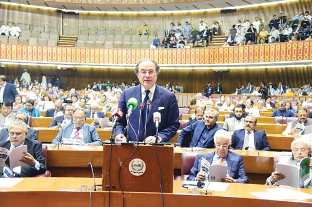 Throughout Dar’s speech, opposition lawmakers chanted slogans against the budget, continuing even after the session adjourned until Thursday.
