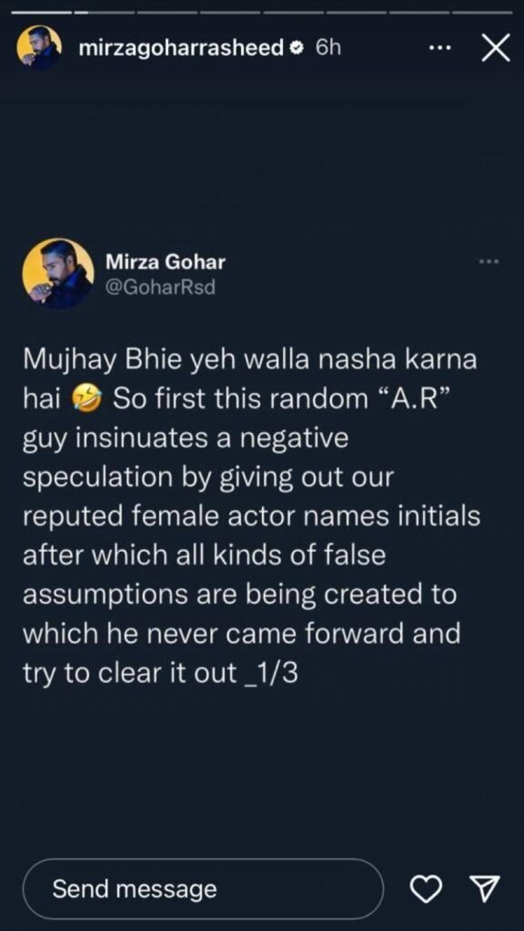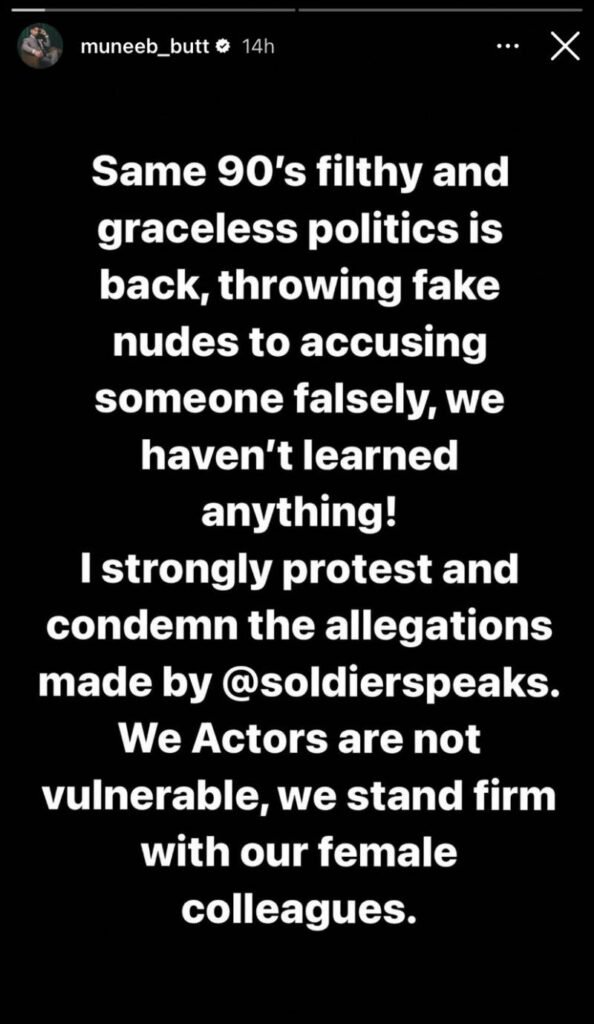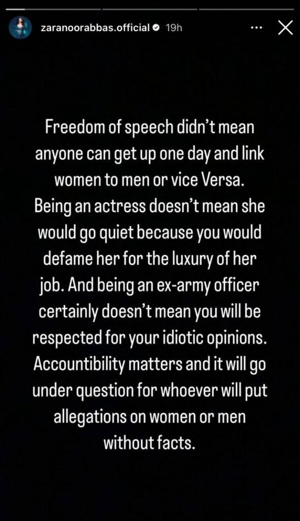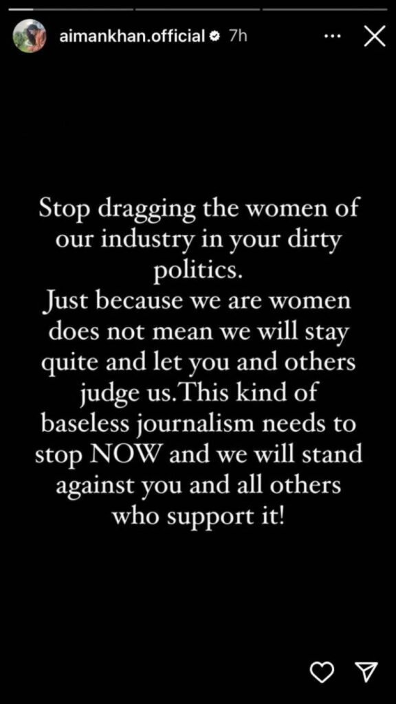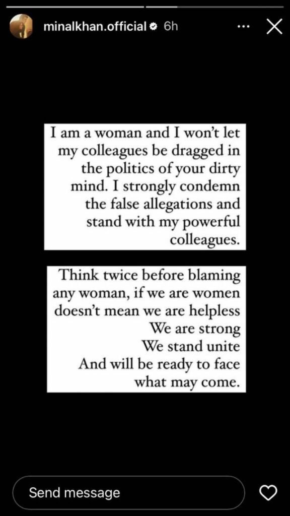 Kubra Khan, Mehwish Hayat, and Sajal Aly among a number of celebrities have also posted messages slamming “baseless insinuations” and “character assassination”.