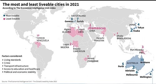 “The cities that have risen to the top of the rankings this year are largely the ones that have taken stringent measures to contain the pandemic. The tough lockdown and tight border controls imposed by Asia-Pacific countries such as New Zealand and Australia allowed their societies to re-open earlier and enabled residents to enjoy a lifestyle that looked similar to pre-pandemic life.”