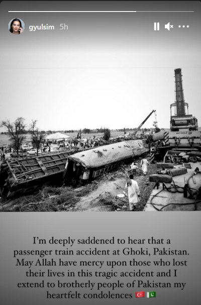 Taking to her Instagram Story, Gulsim shared the image from the incident and wrote “I’m deeply saddened to hear that a passenger train accident at Ghotki, Pakistan.”