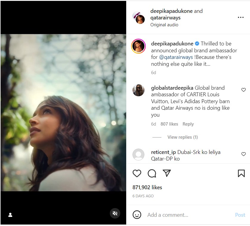 She has been the face of prominent global brands and has recently added Qatar Airways to her list. DP made the official announcement on Tuesday via her verified social media handle.
