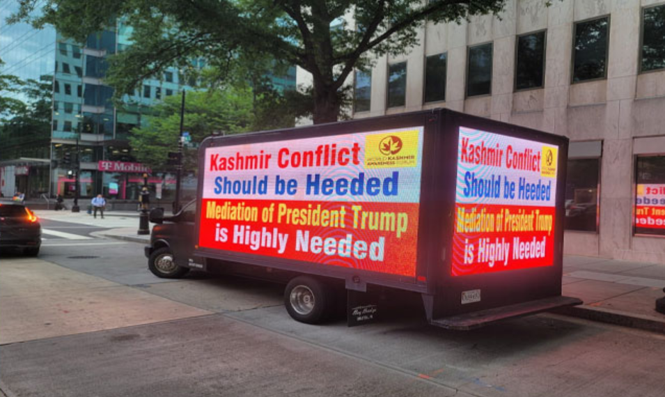 A Kashmir advocacy group launched a digital ad campaign in Washington, D.C., displaying messages on mobile billboard trucks praising former U.S. President Donald Trump for his role in easing tensions between nuclear-armed India and Pakistan. The campaign also called for international intervention to resolve the long-standing Kashmir issue.