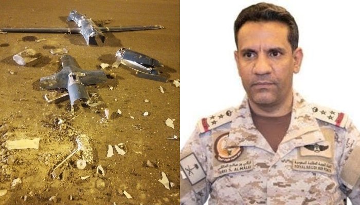 A second explosives-laden drone was intercepted early on Saturday, the coalition said, without giving details on any injuries or damages.
