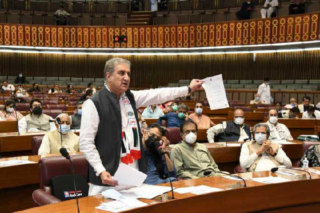 Before the prime minister’s speech, PPP Chairperson Bilawal Bhutto-Zardari and Foreign Minister Shah Mahmood Qureshi exchanged heated words during a noisy session of the NA.