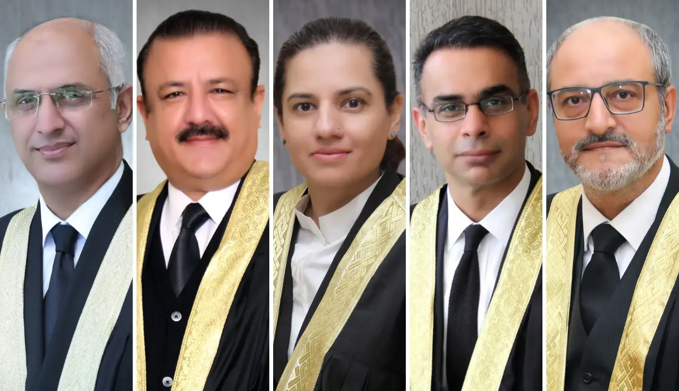 The FCC convened a six-member larger bench, led by Chief Justice Aminuddin Khan. The bench also included Justice Syed Hassan Azhar Rizvi, Justice K K Agha, Justice Aamer Farooq, Justice Ali Baqir Najafi, Justice Rozi Khan Barrech, and Justice Arsahd Hussain Shah.