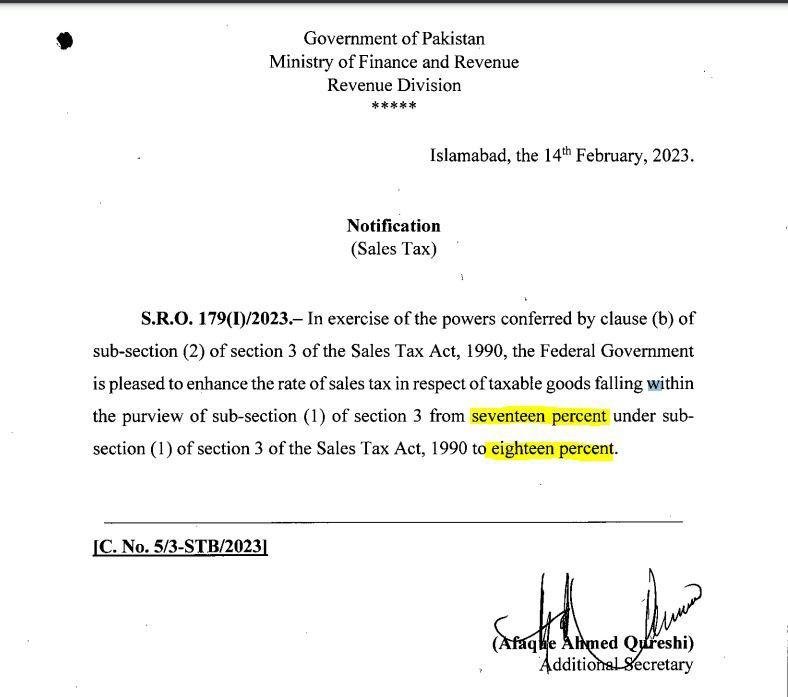 The FBR issued the Statutory Regulatory Order (SRO) to enhance GST rate from standard 17 to 18% and increasing the Federal Excise Duty (FED) on cigarettes.
