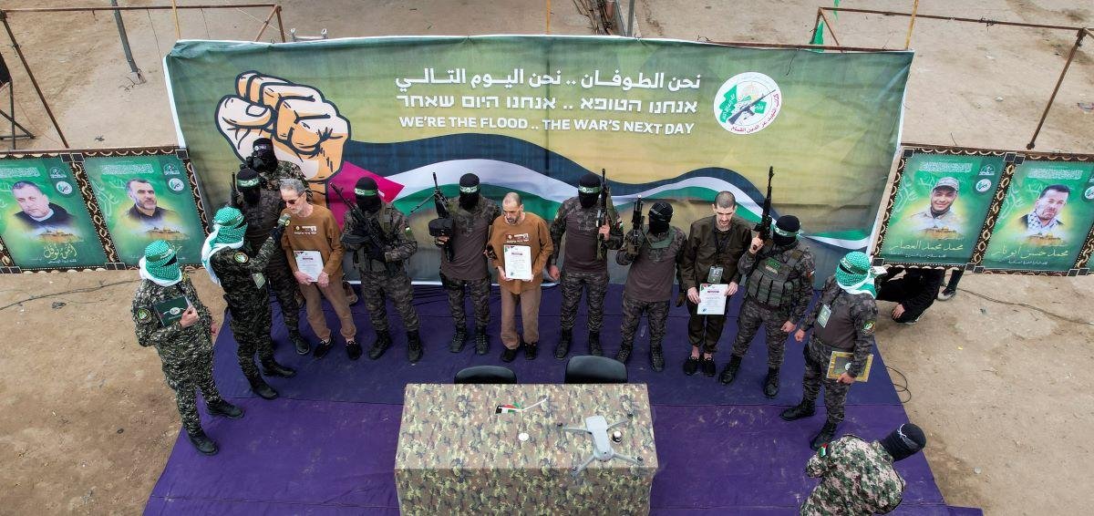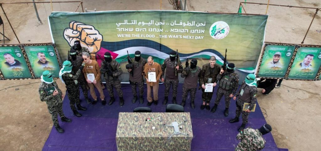 Hamas has released three Israeli hostages on Saturday, shocking many in Israel as the hostages appeared frail and in poor health. The hostages—Ohad Ben Ami and Eli Sharabi, taken from Kibbutz Be’eri during the Hamas-led attack on October 7, 2023, and Or Levy, abducted from the Nova music festival—were handed over during a ceremony staged by Hamas in Gaza. The event, where the hostages were seen answering questions while surrounded by armed militants, highlighted the severity of their condition.