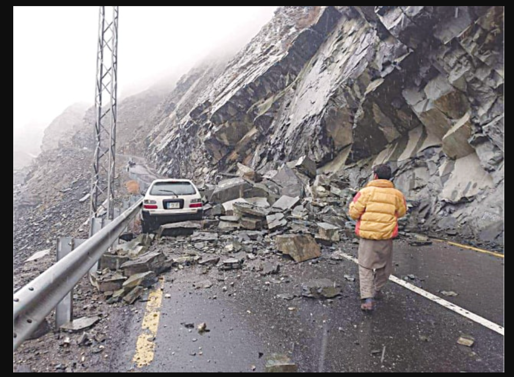 Continuous rainfall and fresh snowfall in Gilgit-Baltistan have caused multiple landslides, blocking the Karakoram Highway (KKH) between Diamer and Kohistan districts. The highway closure has stranded thousands of passengers, including elders, children, and patients traveling to and from the region.