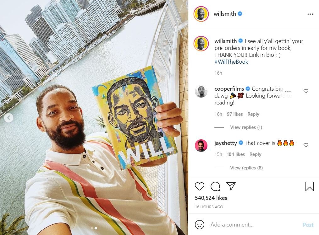 On Sunday, the Penguin Press announced that Smith will release his memoir called Will on November 9. Later, the actor-rapper shared a photo of the book’s cover art to more than 54 million of his followers on Instagram.