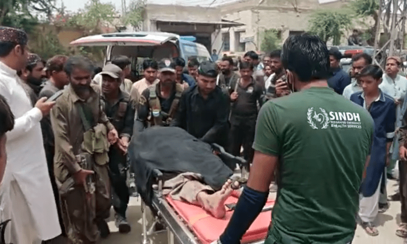 Constable Hassan Ali was sent to another hospital owing to his serious condition after the corpses of the deceased and the injured were carried to Jacobabad civic hospital.