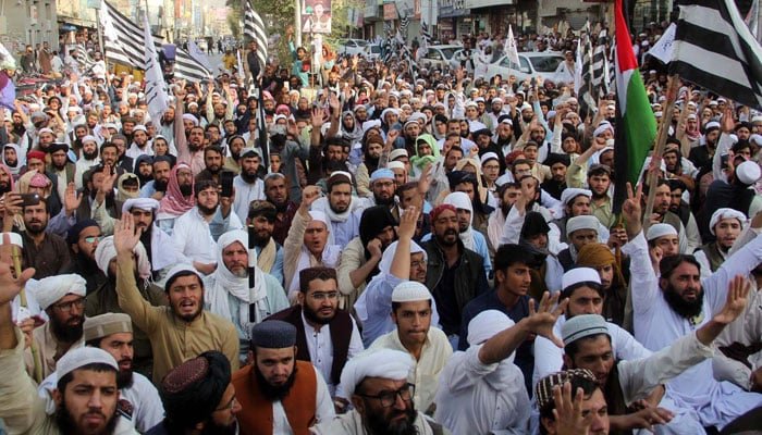 JUI’s Sindh Aman March is also en route to Karachi, where it will merge with the Aqsa protest on Shahrah-e-Qaideen.