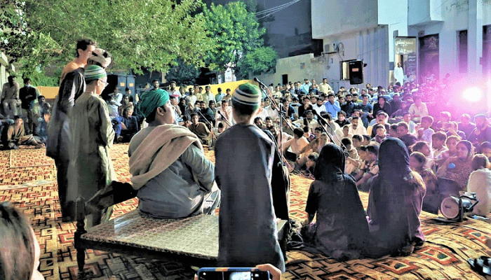 Every year, pilgrims from all over the world visit the shrine of the 17th-century Sufi poet Bulleh Shah in Kasur, Punjab, and it is there that many fans of Punjabi theater may be found. On the 265th year of his death, a drama titled Konan Kon Sunja Tey (The Identity-less Connect with the Identity-less) was staged as part of the three-day urs (death anniversary of a Sufi saint).