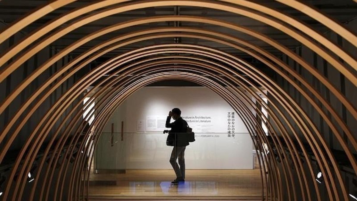 Visitors enter through a tunnel-like passageway in the five-story building designed and renovated by architect Kengo Kuma, one of Murakami’s many fans and the designer of the Tokyo Olympics stadium. Kuma said tunnels are his image of Murakami’s stories, in which protagonists often travel between the real and the surreal.