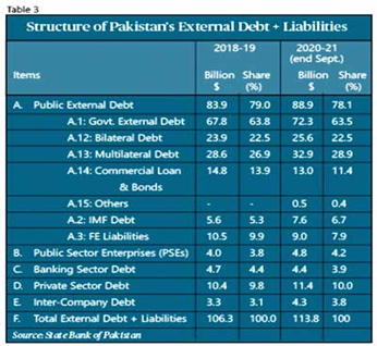Like the debt structure of eligible African countries, where bilateral official creditors accounted for only 20 percent of their total debt, in Pakistan too, the structure of the debt is such that only 22.5 percent or $25.6 billion external debt is owed to bilaterals while $63 billion or over 55 percent is owed to multilateral, the IMF, commercial banks, bondholders and others (See Table 3). Accordingly, Pakistan also benefited very little from the DSSI.