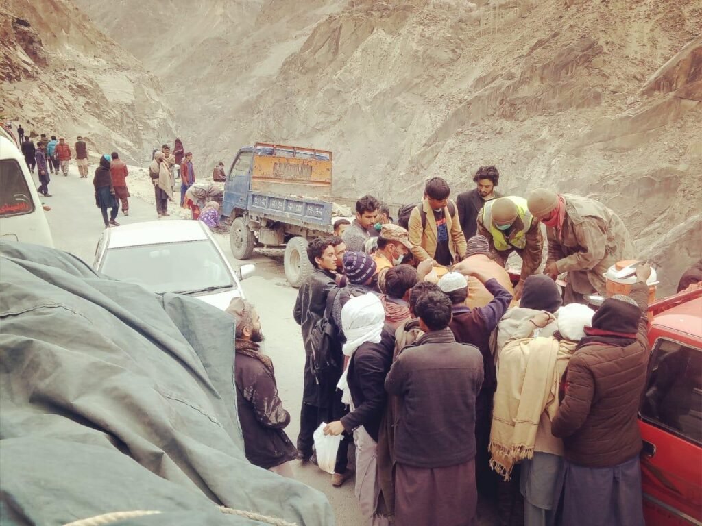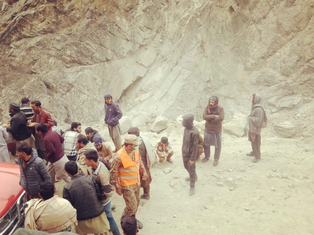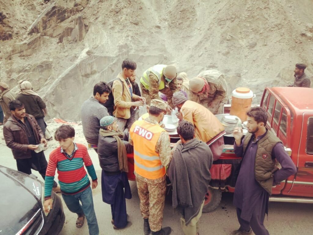 The Frontier Works Organization (FWO) rescued stranded people after the Gilgit-Skardu road in Gilgit-Baltistan (GB) was blocked due to a landslide, on Thursday.