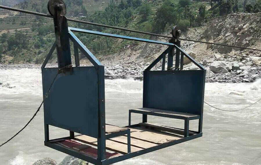 The rescue officials stated that the contact bridge was swept away in the flood, meanwhile, the locals use the chairlift for transportation.