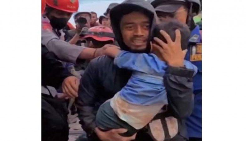 Azka Maulana Malik, six-year old was lying under mattress when rescuers found him under the debris during search for survivors in Cianjur. Minor boy survived the earthquake because he was protected by a mattress.
