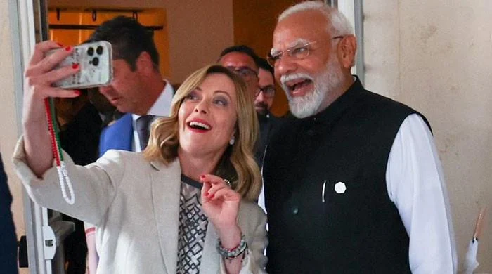 During the G7 summit in Southern Italy, Italian Prime Minister Giorgia Meloni and Indian Prime Minister Narendra Modi shared a moment of lighthearted camaraderie by recreating their famous “Melodi” selfie from the COP28 summit last year.