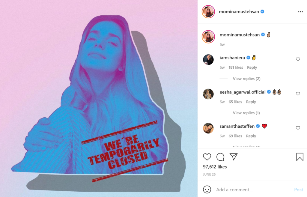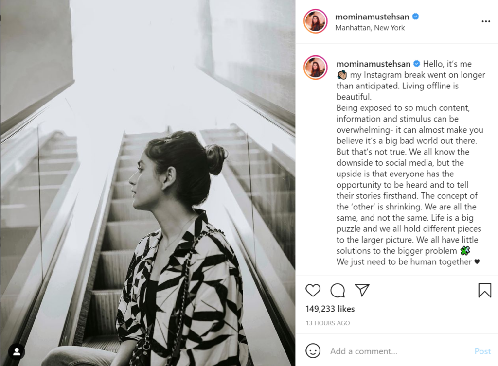 Momina Mustehsan is back after a social media hiatus during which she found out just how beautiful life offline is.