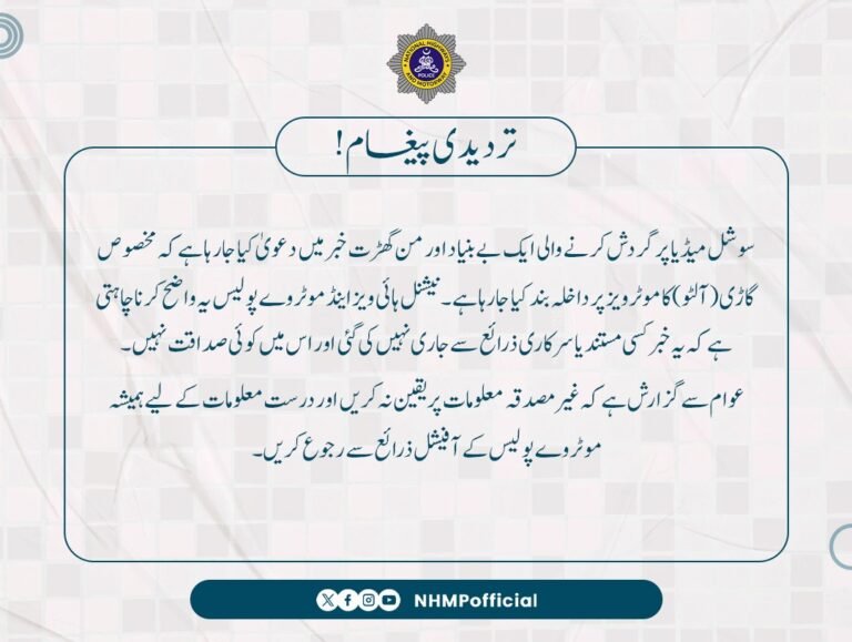 “A baseless and misleading rumor is circulating on social media, stating that the Suzuki Alto has been banned from entering the motorway. The Motorway Police would like to confirm that this claim is not based on any credible or official source and is entirely false. We urge the public not to trust or spread unverified information. For accurate and official updates, please refer to the Motorway Police’s official channels.”
