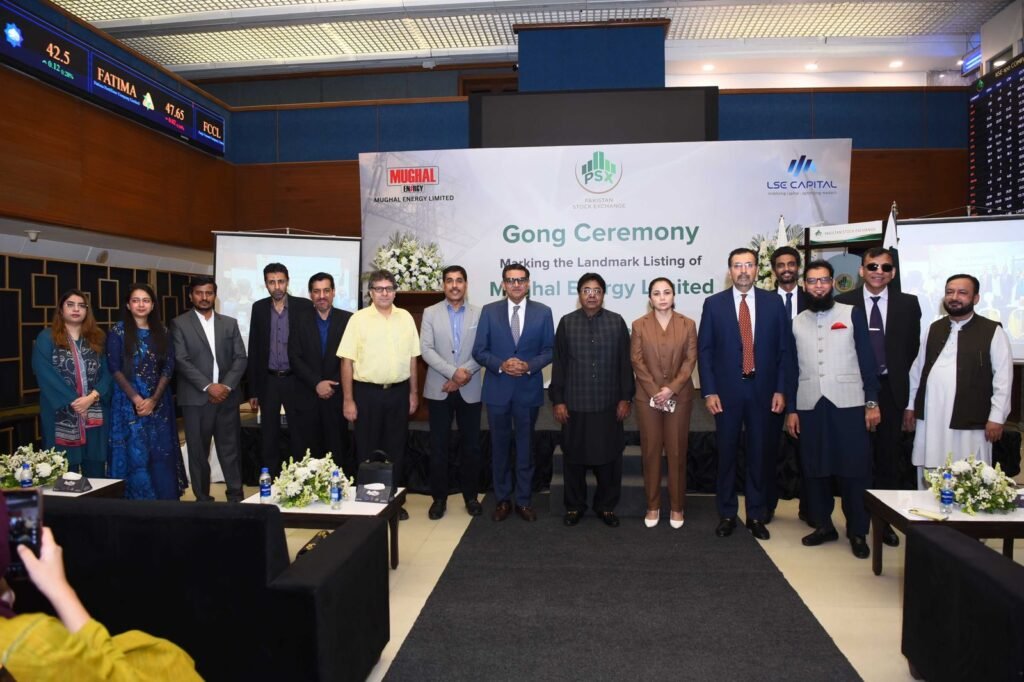 Mughal Energy Limited’s listing on the GEM Board is a matter of pride, achieved through the professional support of PSX,” he said. Iqbal extended heartfelt thanks to Farrukh H. Khan and his team, Aftab Chaudhry and the LSE Financial Services team, and all investors who contributed to the successful IPO.