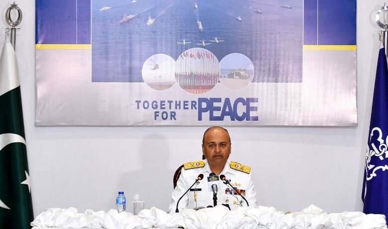 Media brief of multinational Maritime Exercise AMAN-23 was held at PNS JAUHAR. Commander Pakistan Fleet Vice Admiral Ovais Ahmed Bilgrami briefed media regarding Exercise details.