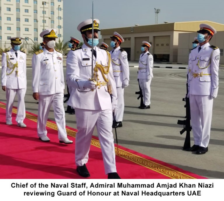 During the call on with Commander UAE Naval Forces, matters of bilateral naval collaboration and regional maritime security were discussed. The Naval Chief underscored Pakistan Navy’s initiative for ensuring maritime security in the region through Regional Maritime Security Patrols (RMSP) and participation in Combined Maritime Force. The Naval Chief also thanked Commander UAE Naval Forces for participation in Multinational Maritime Exercise AMAN-21. Commander UAE Naval Forces acknowledged Pakistan Navy’s efforts and commitment in support of collaborative maritime security and appreciated the successful conduct of Exercise AMAN-21.