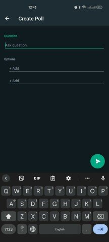 On both individual and group chats, polls are displayed with the option to add up to 12 options.