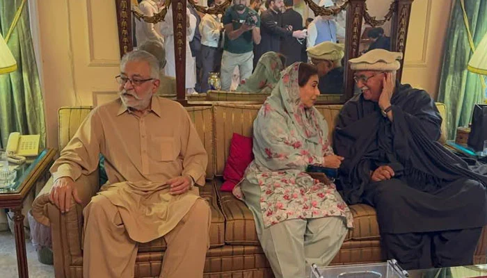 A TTAP delegation, led by Mahmood Khan Achakzai and including PTI’s Asad Qaiser, Salman Akram Raja, Sardar Lateef Khosa, Nasir Sheerazi, Haleem Adil Sheikh, Hamid Raza, and Sajid Tareen, met with GDA leadership, including Pir Sadaruddin Shah Rashdi, Dr Safdar Abbasi, Dr Fahmida Mirza, Liaquat Jatoi, Syed Zain Shah, Sardar Abdul Rahim, Dr Zulfiqar Mirza, and others. The meeting took place amid growing opposition efforts to strengthen their alliance and strategize against the government.
