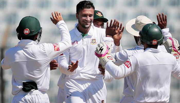 Resuming on 39-4, Bangladesh looked down and out once they lost Mushfiqur Rahim in the first over of the day, before Liton, who struck a hundred in the first innings, hauled the hosts back to respectability with 59 off 89 balls.