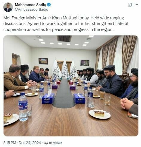 Following his meeting with Foreign Minister Muttaqi, Ambassador Sadiq shared on X (formerly Twitter): “Met Foreign Minister Amir Khan Muttaqi today. Held wide-ranging discussions. Agreed to work together to further strengthen bilateral cooperation as well as for peace and progress in the region.”
