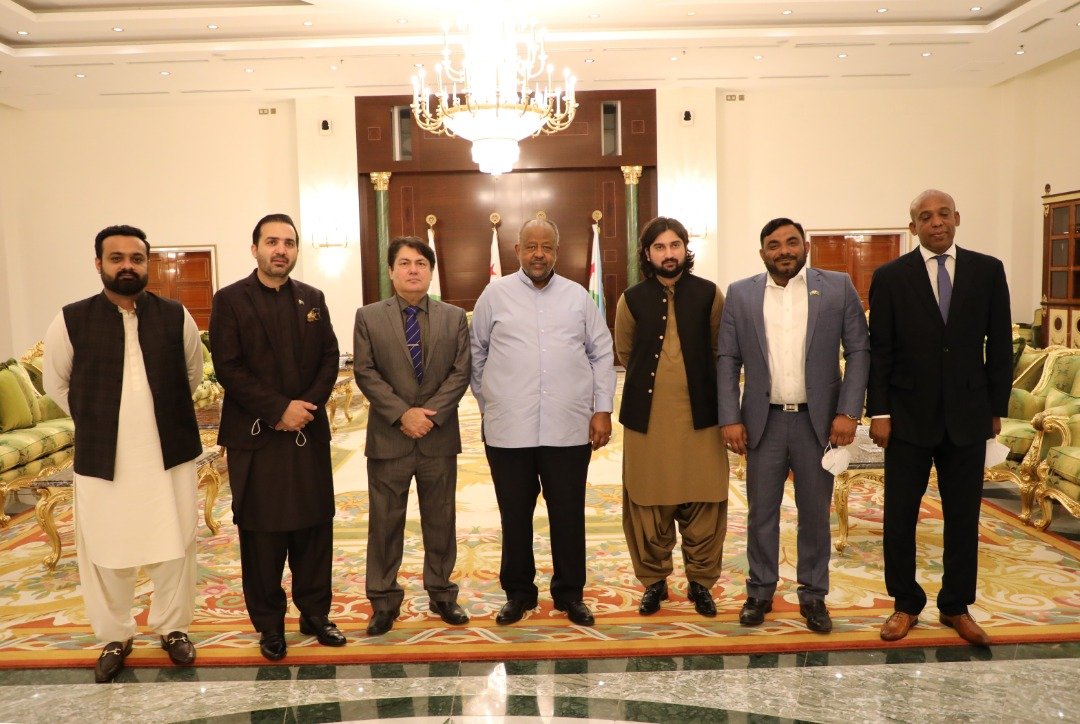 During the visit The President of the Djibouti Republic, Ismail Omer Guelleh welcomed the Pakistani delegation led by the Secretary-General of the International Congress of the parliament, Muhammad Ali Saif, at the palace of the Republic, in January 2021. From Djibouti, Mr Mohamed Ismail Youssouf, Member of the National Assembly, and the Secretary-General of the Presidency Mohamed Abdillahi Wais took part in several meetings with delegation.