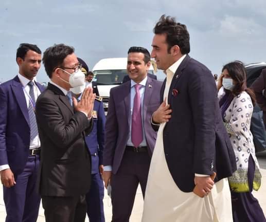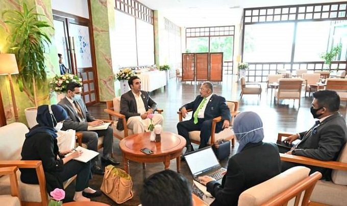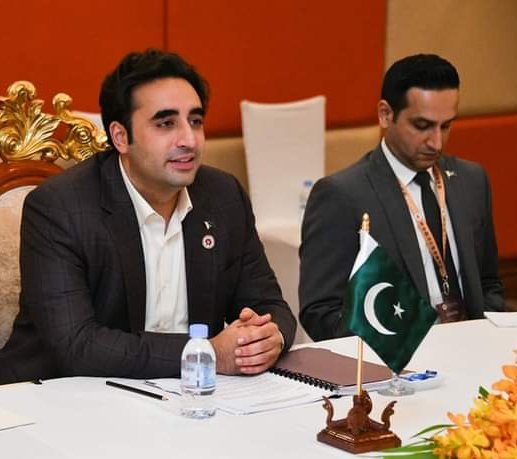 Foreign Minister Bilawal Bhutto and Pakistan’s Ambassador to Cambodia Mr Zaheer ud Din Babar Thaheem are seen in the meeting.