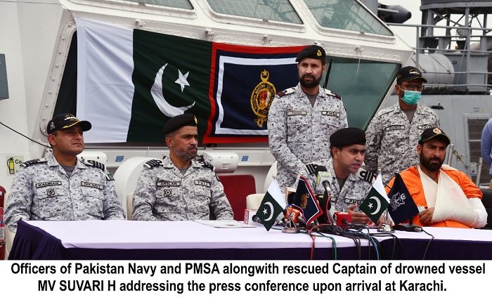 ISLAMABAD: Pakistan Navy and Pakistan Maritime Security Agency conducted a joint operation at 180 Nautical Miles South of Karachi and rescued crew of MV SUVARI H. The operation was carried out in the exclusive economic zone of Pakistani sea in which the cargo ship sank due to strong winds and tide.
