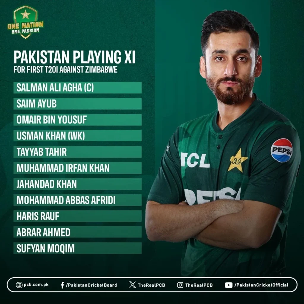 The Pakistan Cricket Board (PCB) has officially announced the playing XI for the first T20 International (T20I) match against Zimbabwe, scheduled to take place tomorrow at the Queens Sports Club in Bulawayo.
