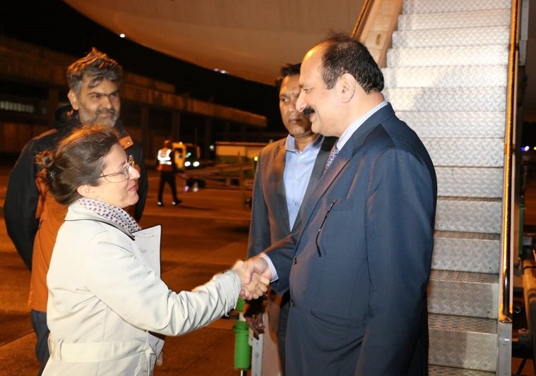 Former Deputy Speaker Punjab Assembly, Rana Mashhood Ahmad Khan accompanied the plane from Pakistan.