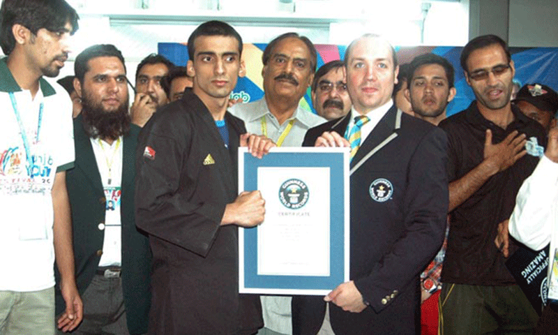 Celebrated Pakistani martial artist Ahmad Amin Bodla has once again etched his name in the annals of achievement by breaking his 14th Guinness World Record. In a remarkable feat, Bodla executed 534 one-leg push-ups, each carrying 60 pounds on his back, within a one-hour timeframe. This accomplishment surpasses the previous Guinness World Record of 300 in the same category.