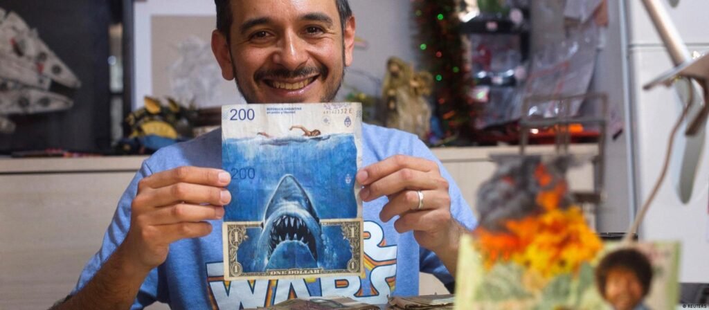 The Argentinian artist Sergio Diaz transformed his country’s nearly worthless Peso into the work of the art. Diaz found his own way to make a statement against inflation. He transforms bills into artwork. In doing so he used motifs from Harry Potter series.
