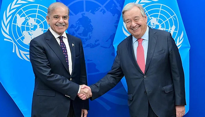 Prime Minister Shehbaz Sharif has urged United Nations Secretary-General Antonio Guterres to use his influence to ensure the implementation of the UN Security Council’s resolutions on Jammu and Kashmir.