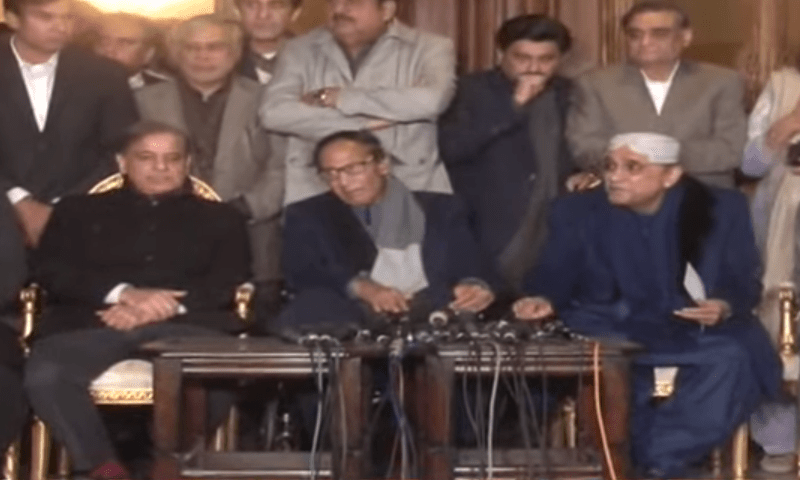 On Tuesday, leaders of six major political parties in Pakistan revealed their decision to collaborate in forming a government with the aim of addressing the country’s current challenges. The leaders, representing the Pakistan Peoples Party, Pakistan Muslim League Nawaz, Balochistan Awami Party, Muttahida Qaumi Movement, Pakistan Muslim League Quaid-e-Azam, and Istehkam-e-Pakistan Party, reached this consensus during a meeting at Chaudhry Shujaat’s residence.