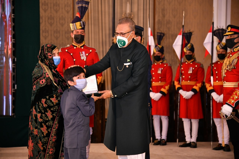 President Dr Arif Alvi has conferred Pakistan civil awards on prominent personalities including foreign nationals in recognition of their services in different fields including medicines, education, social services, fine arts and for showing gallantry in the war against terrorism and during the coronavirus pandemic.