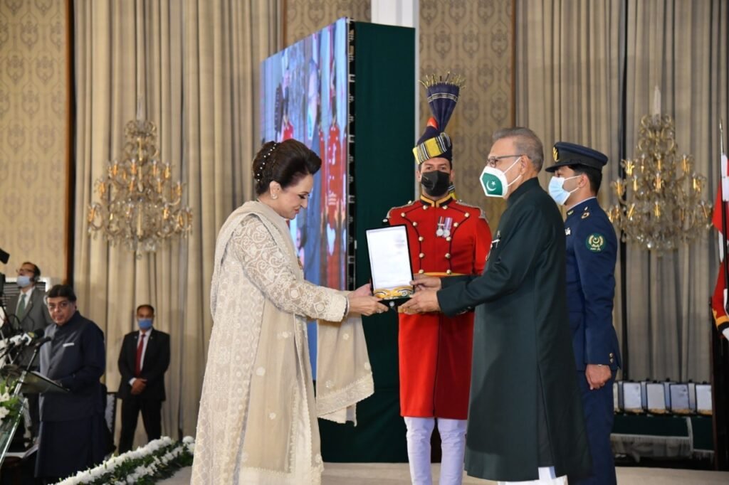 President Alvi also conferred President’s Pride of Performance Award on Ruth Wenny Lekardal (Services), Prof Dr Khalid Masood Gondal (Education), Naimat Sarhadi (Film), Muhammad Ali Shyhaki (Music), Saima Shah (Resham) (Film), Humayun Saeed (Film), Ali Zafar (Singing), Hina Nasrullah (Sufi Singing), Sarmad Sehbai (Literature), Indu Mariam Mitha (Dancing), Farhan Mehboob (Sports Squash), Moulana Tariq Jameel (Religious Scholar), Abdul Majeed Qureshi (Philanthropy) and Muhammad Faheem (Arts, Wood Lacquer).